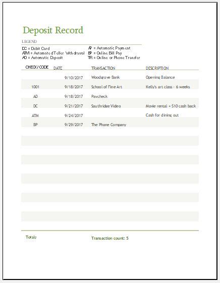 3. Audit Trail: Having a well-documented deposit record acts as an audit trail, enabling you to provide evidence and support for your financial transactions in case of audits or legal requirements.