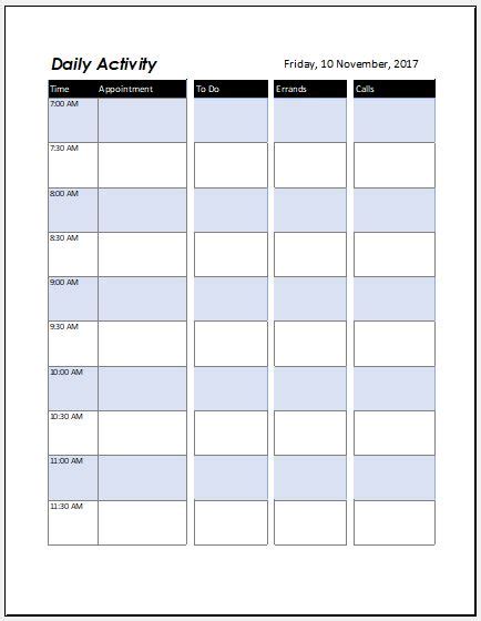With a daily activity punch sheet, you can minimize stress and anxiety associated with a busy schedule. By having a clear plan for the day, you can reduce the chances of feeling overwhelmed or forgetting important tasks. It provides a sense of control and allows you to approach your day with a calm and focused mindset.