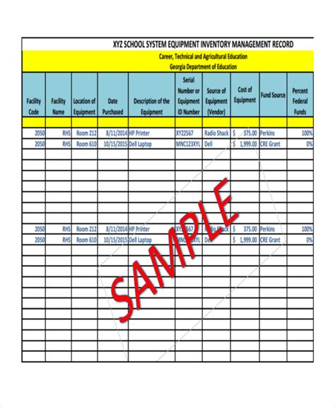 Sample School Equipment Inventory Template