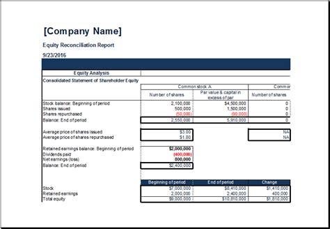 A well-designed equity reconciliation report template can help you streamline your equity management process. Here is a sample template that you can use as a starting point: