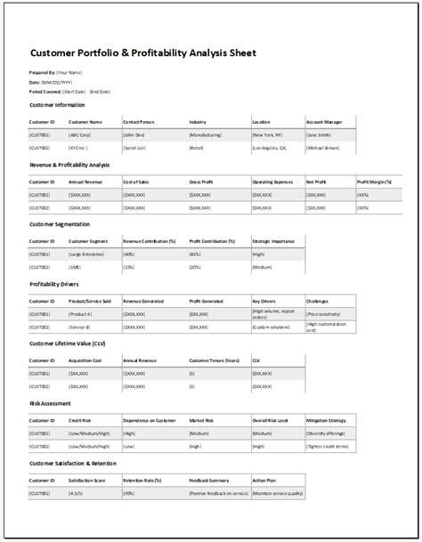 Customer portfolio profitability analysis sheets are a valuable tool for businesses to assess the profitability of their customer base. By analyzing key metrics and financial data, businesses can gain insights into which customers are most valuable and identify areas for improvement.