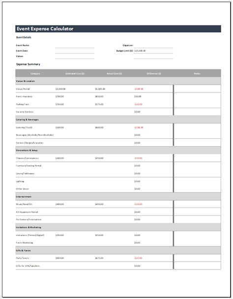 5. Monitor Your Budget: Regularly update your event expense calculator sheet to track your spending. Compare your actual expenses with your budgeted amounts to ensure you stay on track.