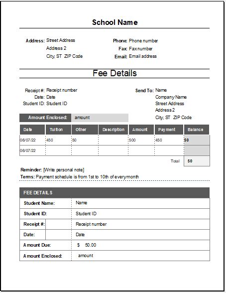 Creating a school fee book format in Excel provides a convenient and efficient way to manage school fees. By following the steps outlined in this guide, you can design a personalized fee book, track payments, generate reports, and automate reminders. Excel's versatile features make it a valuable tool for school administrators, accountants, and parents alike.